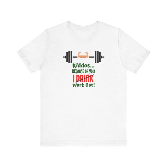 Kiddos Because of You I Work out Unisex Jersey Short Sleeve Tee